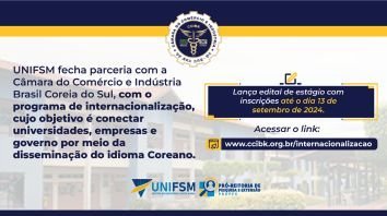 Como parte desta iniciativa, o UNIFSM lança o Edital de estágio, oferecendo aos alunos a oportunidade de se candidatarem para vagas em empresas e instituições parceiras na Coreia do Sul. As inscrições para o processo seletivo estão abertas até o dia 13 de setembro de 2024.